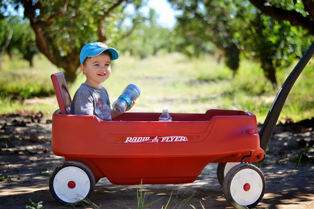 While we celebrated Gabe's birthday with trains, we spent his actual birthday at the apple orchard. I had heard good things about Apple Annie's so we decided to make the drive out there for some good, old fashioned fall fun. Nevermind that it was 90 degrees.